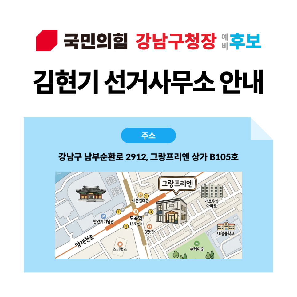국민의힘 강남구청장 예비후보 김현기입니다.